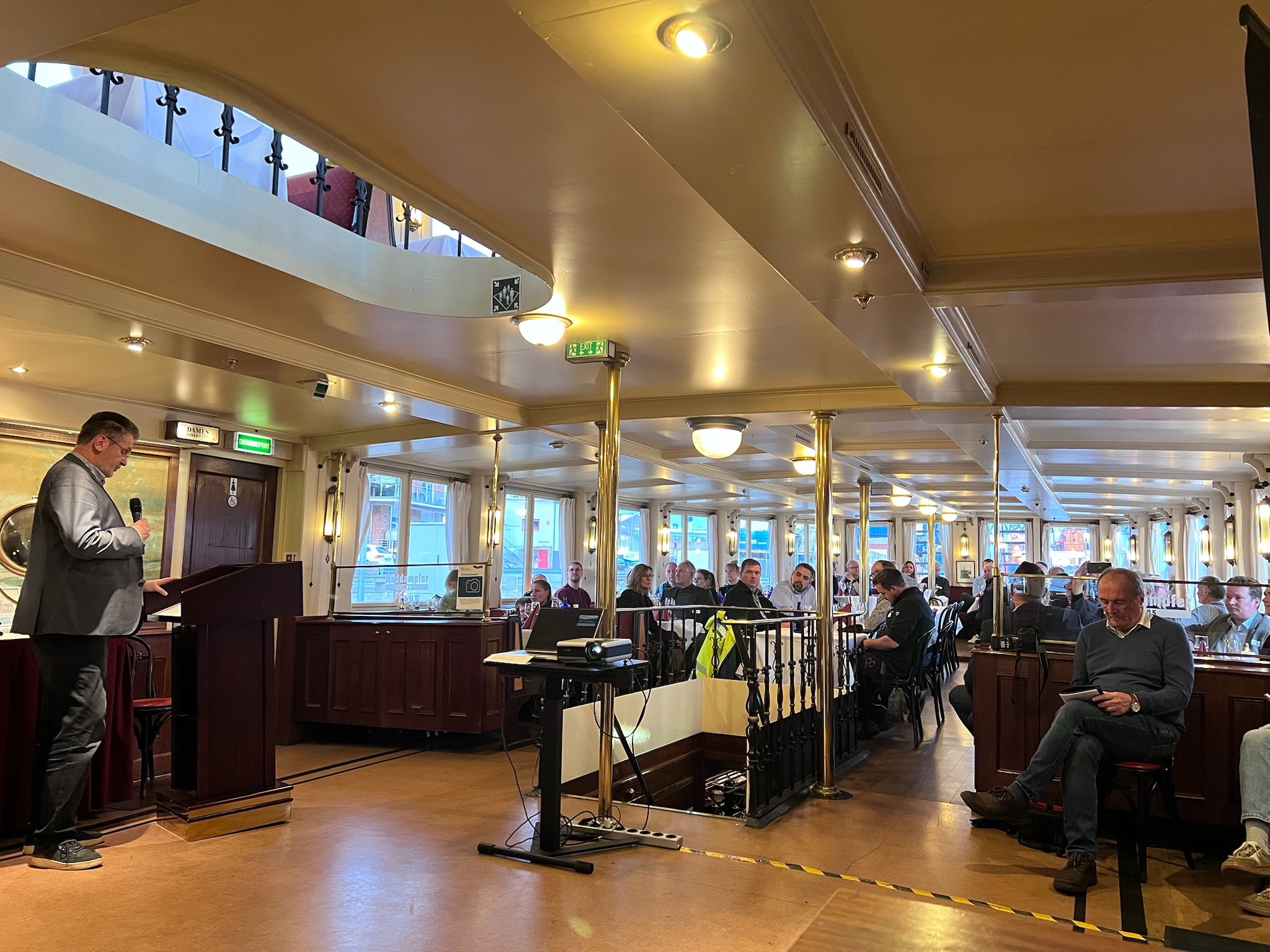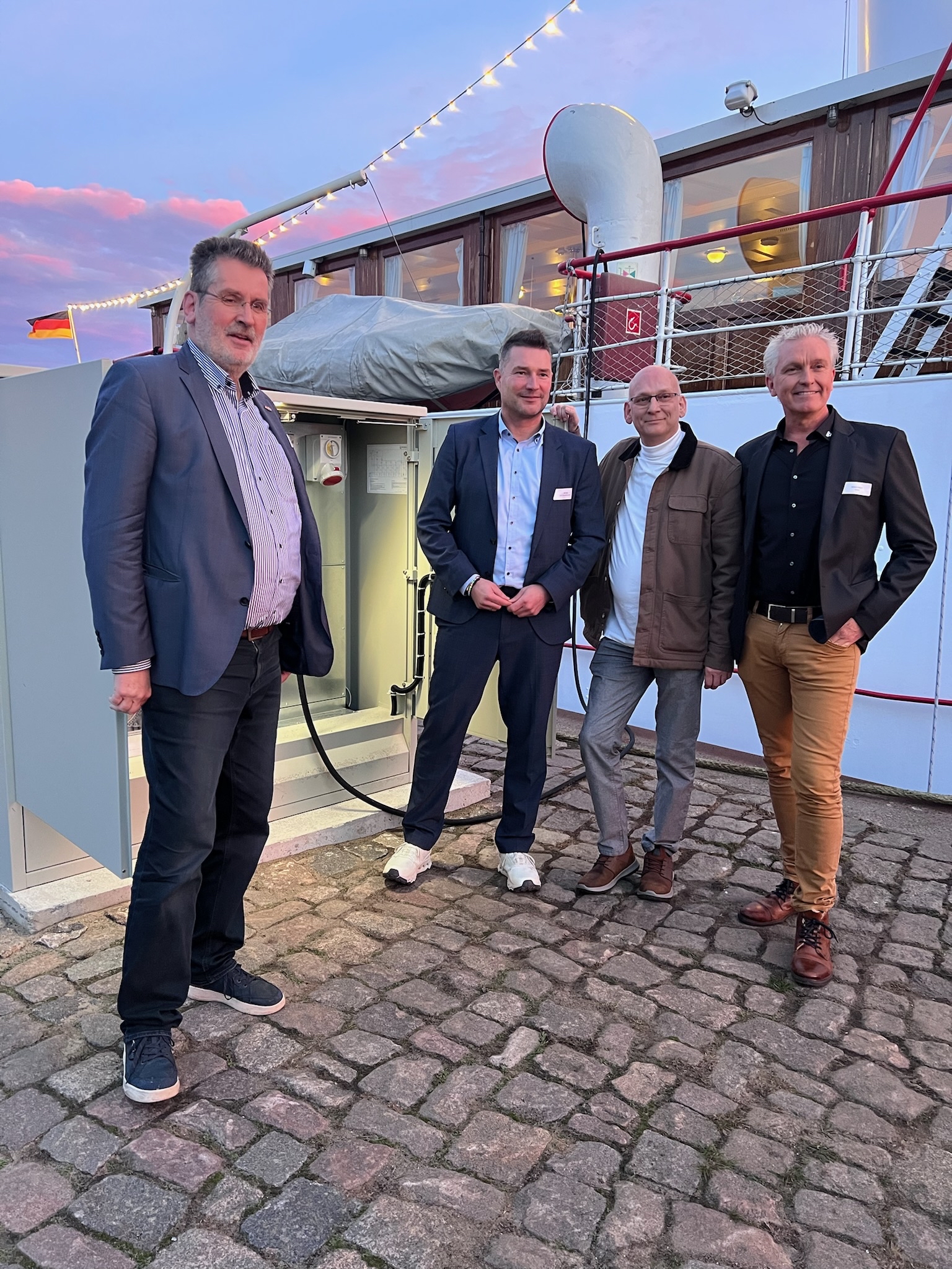 Auch Andreas Haberer, Geschäftsführer der Firma up2board, stellte die Vorteile der neuen Technik vor und präsentierte, wie transparent Reedereien künftig den tatsächlichen Landstromverbrauch erfassen können. Die Kombination aus moderner Infrastruktur und digitaler Auswertung schafft damit echte Mehrwerte für die Schifffahrt.